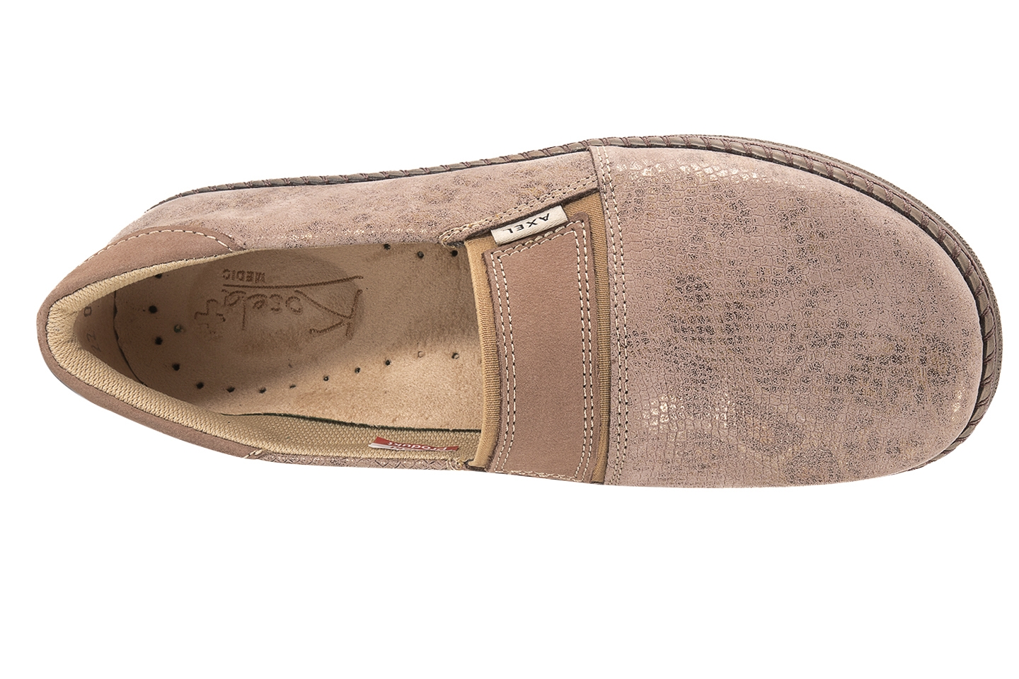 - rodzaj zapięcia: obuwie wzuwane, na wysokości śródstopia gumowe wstawki umożliwiające delikatną regulację tęgości