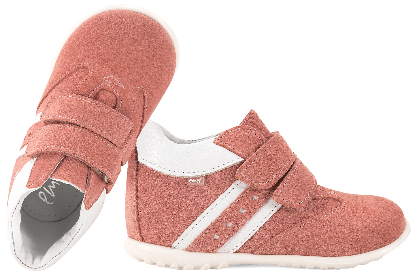 - materiał wierzchni: skóra naturalna zamszowa (łososiowy) / skóra naturalna licowa (biały)